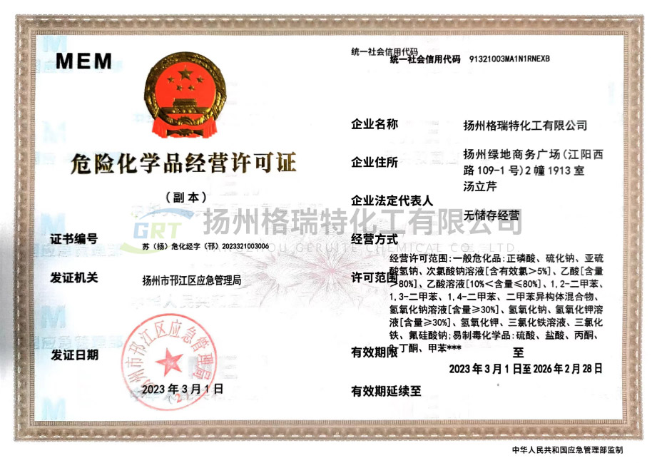 揚州格瑞特化工有限公司生產工廠坐落于江蘇省海安縣胡集工業園區和海安精細化工工業園。總公司成立于1999年,是集科、工、貿為一體的現代化生產型企業。專業致力于水處理劑、紡織印染助劑、化纖油劑等產品的科研、開發、生產和銷售。總公司占地面積40000m,建有現代化標準廠房,擁有先進的生產設備。年產各類水處理劑系列產品12000噸,紡織印染助劑5000噸,產品12個系列40多個品種。總公司注重技術投入,設立產品研發中心和環保運營中心,聘請了多位專家為公司技術顧問,并和多個重點院校建立了長期技術合作開發關系,是南通大學、江南大學、南京工業大學產學研基地。